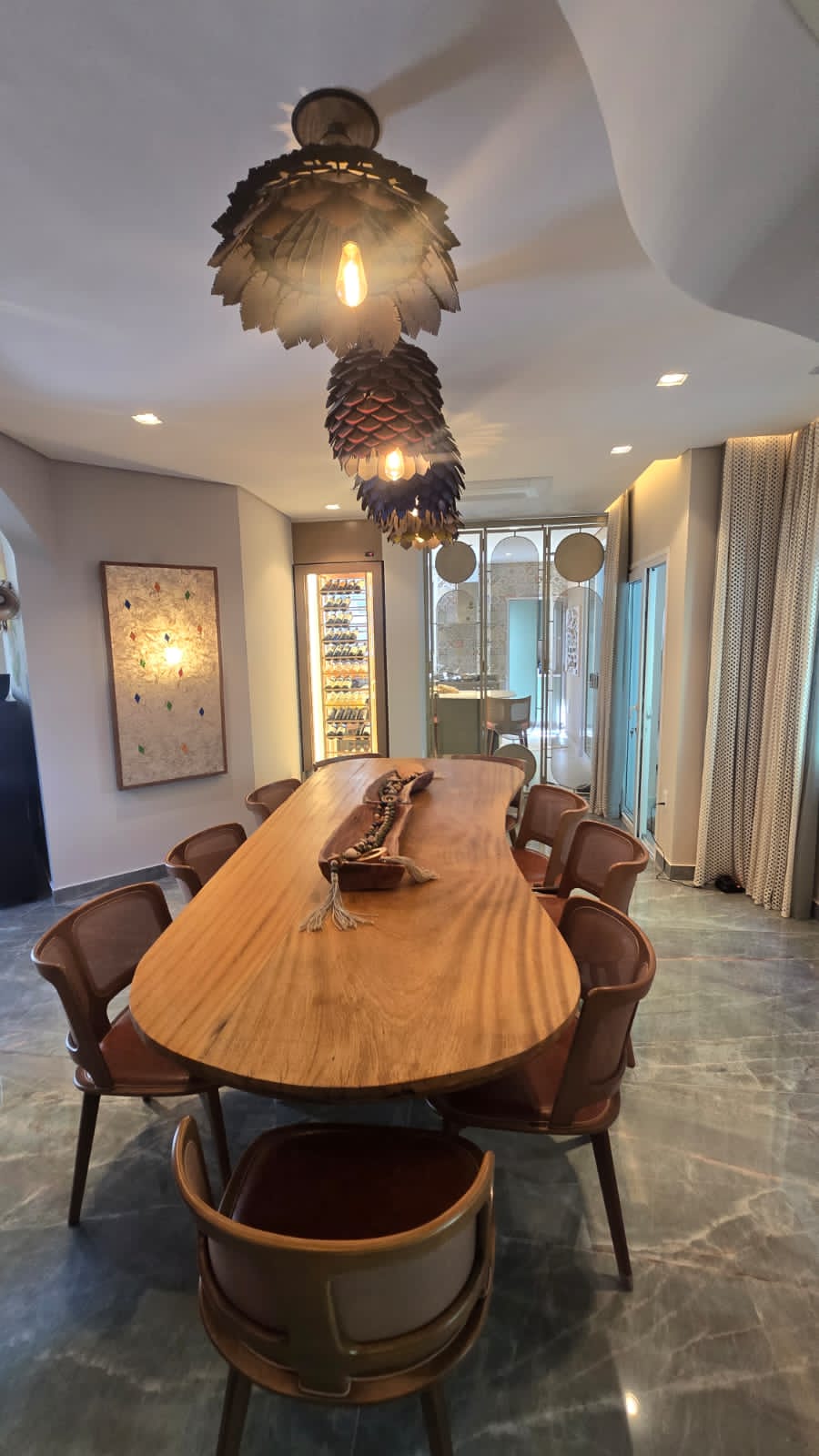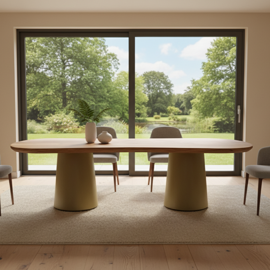 Conheça a essência da elegância em cada traço da nossa mesa de jantar orgânica. Feita à mão com formas perfeitas e cuidadosamente esculpida em madeira maciça, cada peça é uma obra-prima única, imbuída de beleza natural.