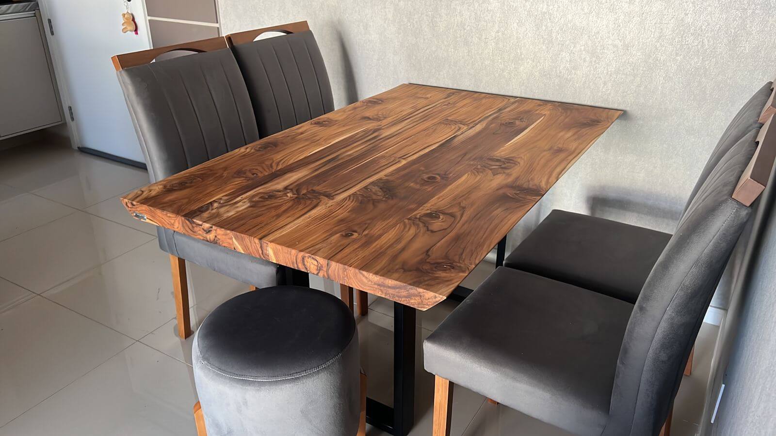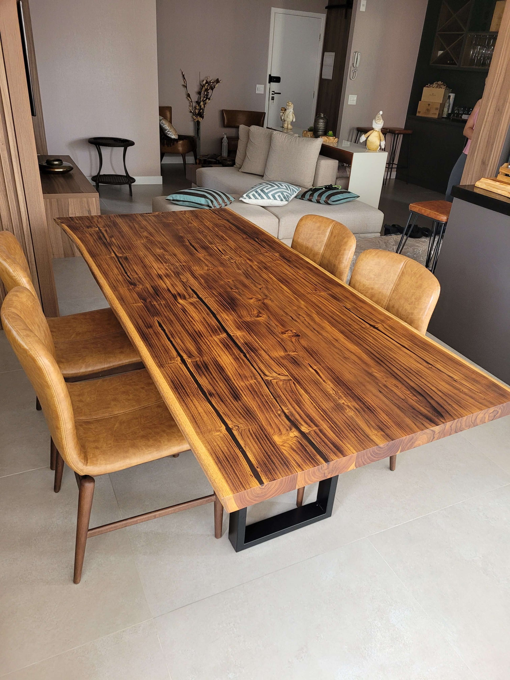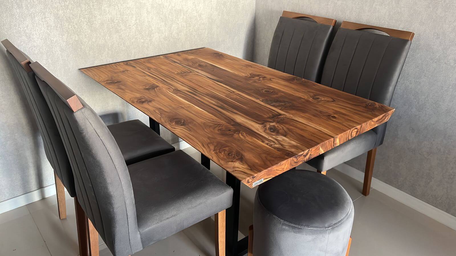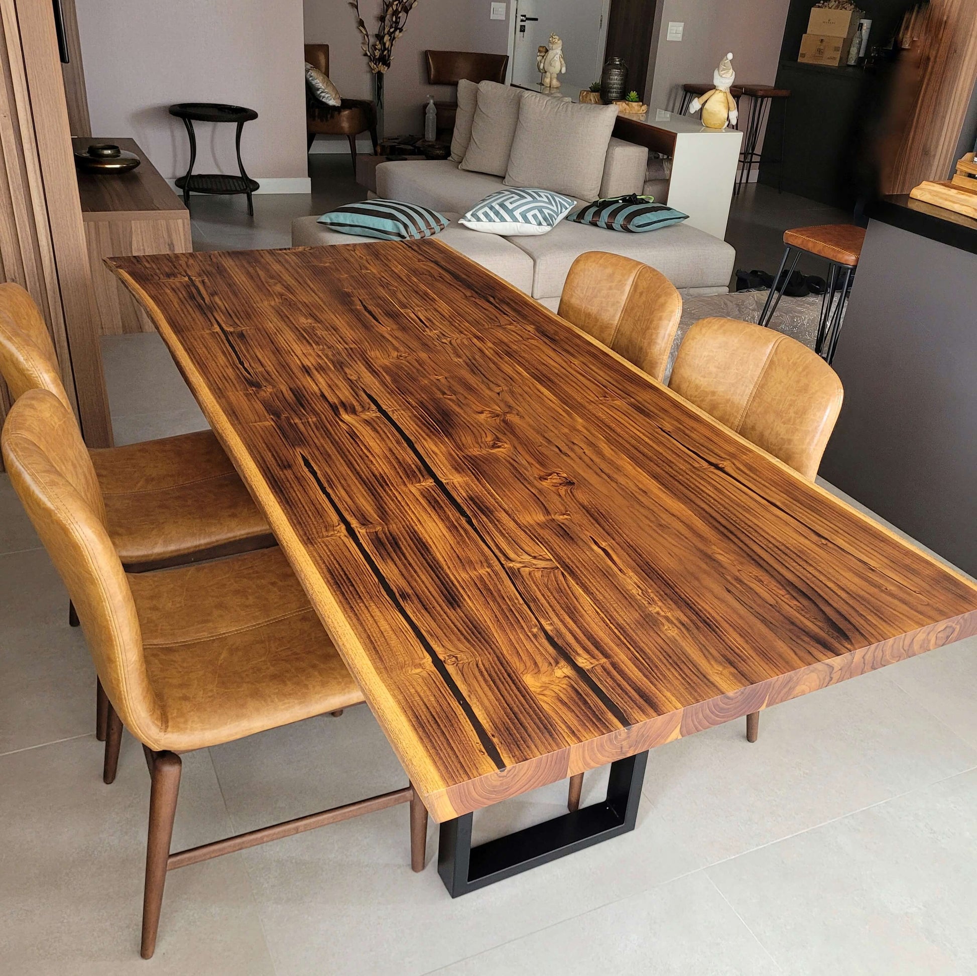 A Mesa Teca Burn faz parte da nossa linha de Mesas Teca exclusiva da Vita&Arte, possui a superfície do tampo suavemente carbonizada uniformemente, escurecendo e trazendo esse tom único para a Teca.